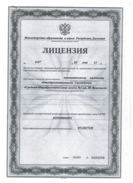 Полное наименование образовательной организации* Муниципальное бюджетное общеобразовательное учреждение "Средняя общеобразовательная школа №1 имени М. Ярагского поселка Белиджи"